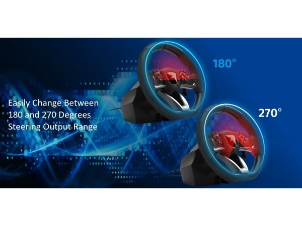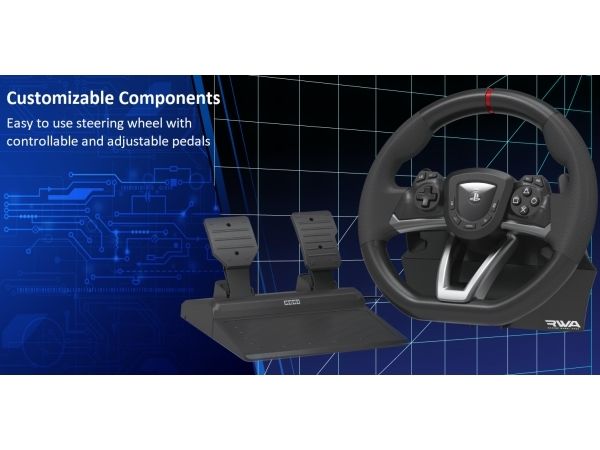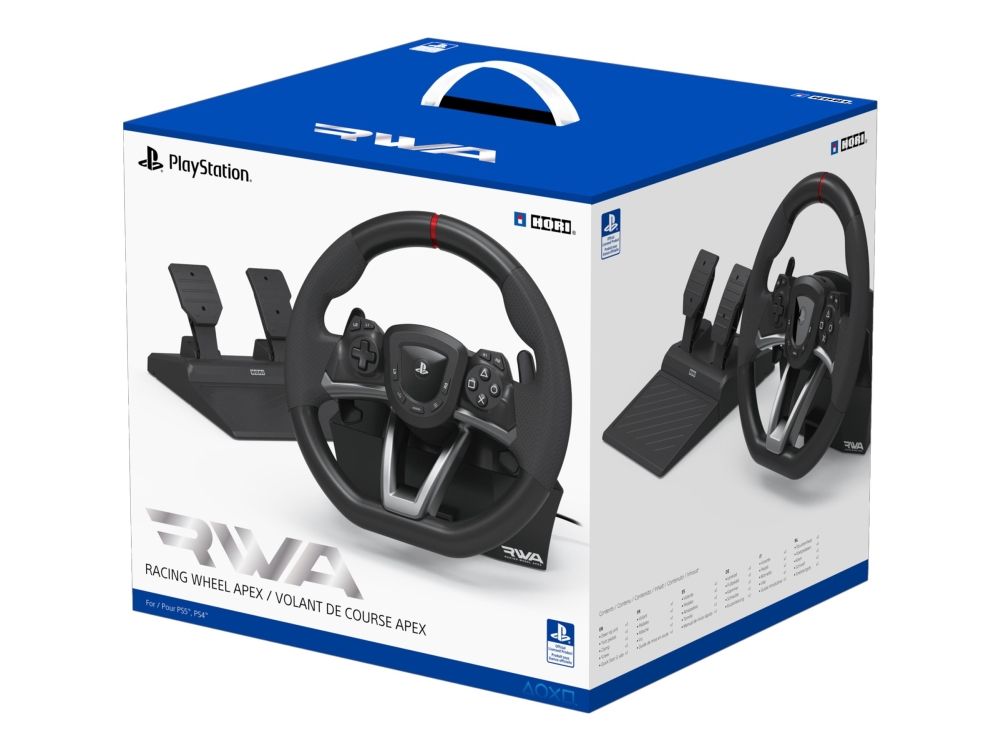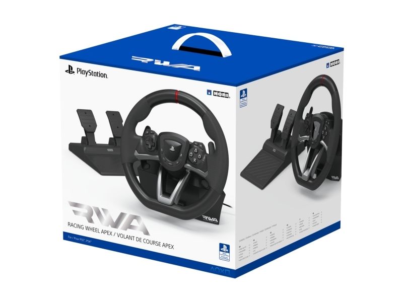 HORI brings the best in build-quality, customization options, and authentic racing simulation with the Racing Wheel APEX for the PlayStation 5 and PlayStation 4. HORI's design team has brought all the features and quality of a full-size racing wheel at an affordable price. Massive 270 degree turn-ratio - Completely programmable & adjustable, and PS5, PS4 & PC compatible. The Racing Wheel APEX clamps securely to your table or racing wheel stand with sturdy clamps and steel parts. The full-size pedals are built to last. Change from 270 degree to 180 degree turn ratio on the fly and fine tune other settings such as dead zone, pedal sensitivity and more. Cross the finish line with the all new RWA: Racing Wheel APEX for PlayStation 5, PlayStation 4 and PC. Officially licensed by Sony.