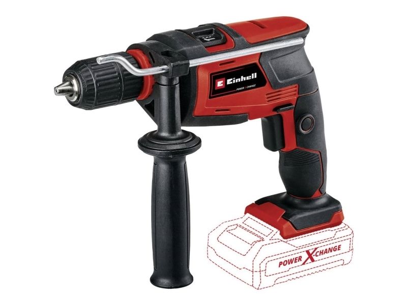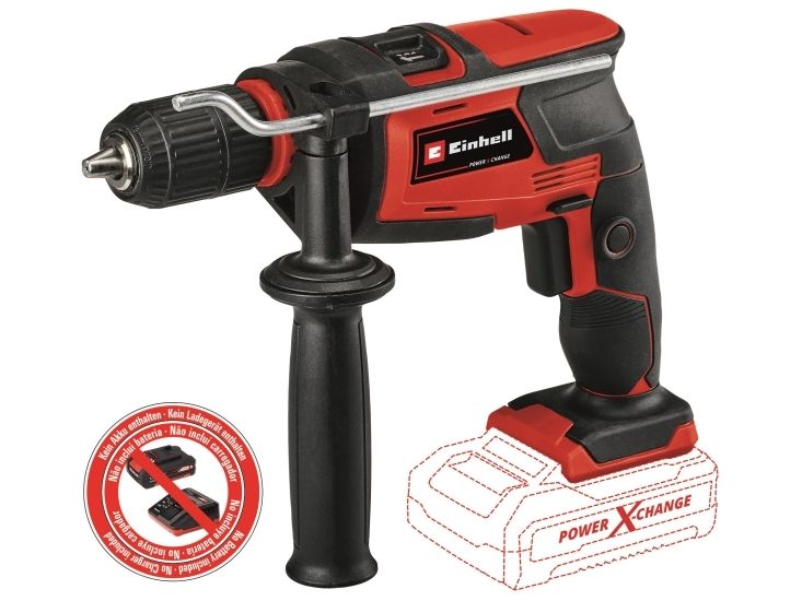 The Einhell cordless impact drill TC-ID 18 Li - Solo is a high-power member of the flexible Power X-Change family. Each PXC rechargeable battery can be combined with any other device from the system series. With its two functions, the cordless impact drill is a powerful tool helping beginners and experienced DIY enthusiasts when drilling and impact drilling into the appropriate material. The continuous operation lock enables holes to be drilled even in tough materials. The speed electronics allows adjustment to the specific material and application whatever the power level of the hammer drill. The adjustable drilling depth stop made of solid metal prevents holes being made too deep. The forward/reverse rotation facility supports drilling, while the 13 mm quick-change drill chuck makes tool changing easy. The ribbed additional handle and the ergonomic design of the handle and the additional handle with soft grip ensure a reliable grip even when resistance is felt. The TC-ID 18 Li - solo is suitable for fastening in a drill stand with a 43 mm shaft. This product comes without a battery and charger. These are available separately, e.g. as a practical Power X-Change starter set.