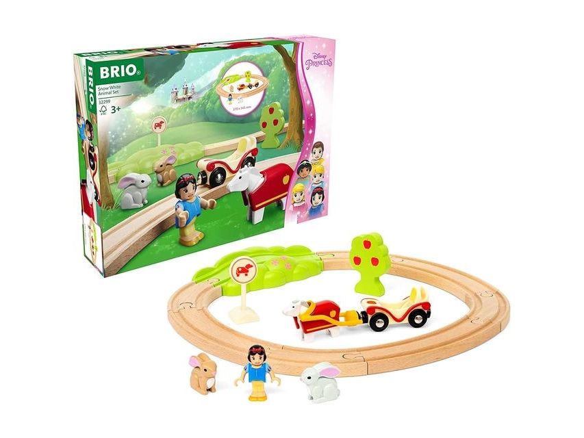 Bli med Disney-prinsessen Snehvit og alle de fantastiske dyrevennene hennes på et skogseventyr med 32299 Disney-prinsesse Snehvits dyresett. Kjør med stil: Klatre om bord i Snehvit-vognen og ri bak den glade, hvite hesten mens du tar en fantasifylt tur gjennom den lille, grønne skogen. Si «hei» til de to små kaninene når du passerer dem. Men vær forsiktig med de skinnende, røde eplene fra treet – ett av dem kan være giftig! Øv på rollespill: Å komme med fantasirike historier og eventyr er en flott måte for barna å utvikle sosiale ferdigheter og forståelse på. De intrikate detaljene i togleken hjelper barna med å utvikle ingeniørkunst og finmotorikk. 32299 Disney-prinsesse Snehvits dyresett inneholder 17 deler; 1x Snehvit-figur, 1x Snehvit-vogn, 1x hest, 1x hestesele, 1x hestedekken, 2x kaniner, 1x epletre i tre, 1x landlig skinne, 1x skilt, 7x kurvete skinner i tre.