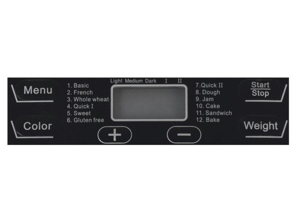 The machine has a re-baking function and a keep-warm function that keeps the bread fresh and warm. The electronic control panel with LCD display and timer programming of up to 13 hours allow you to control the bread preparation.