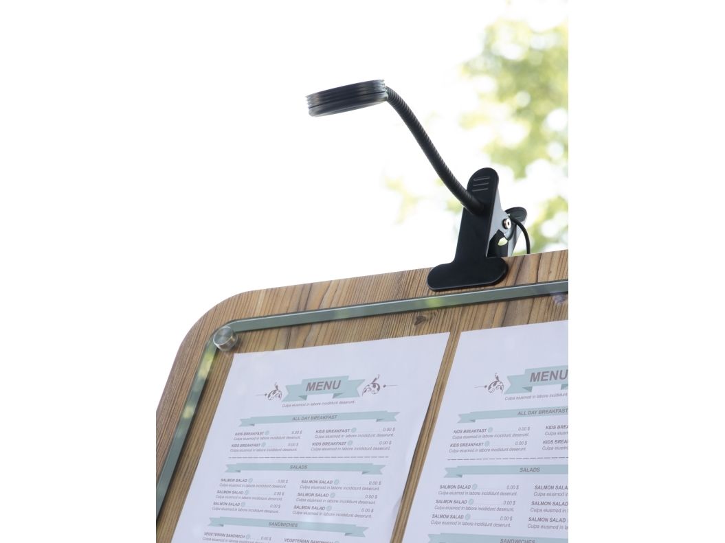 • Brug Securit® LED-lampe til at belyse dit A-skilt og informationsdisplay. Uanset om du vil bruge den indendørs eller udendørs, vil denne vejrbestandige lampe gøre sit job perfekt. Inkluderer et fem meter strømkabel. Har du ikke en stikkontakt til rådighed? Brug den trådløst med Securit® vandtæt batteripakke med lithium-ion-teknologi.