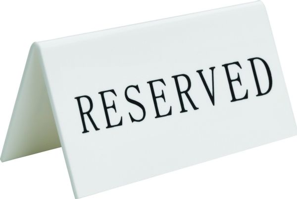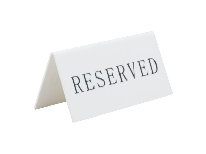 Hold styr på dine reservationer med disse praktiske Securit® bordskilte. Du skal blot placere det på et bord for at sikre dig, at bordet er klart, inden kunderne ankommer. Disse let vaskbare stabile skilte af hård akryl, har en klassisk og letlæselig skrifttype. kombiner dette sæt reservationsskilte med vores nummerbordskilte og få et ensartet udtryk. Findes på forskellige sprog.