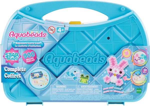 Aquabeads – originalen siden 2004. I Aquabeads startsett i koffert finner man alt man trenger for å begynne å leke med en gang. Med de 900 fargede hobbyperlene kan det med malene oppstå flotte kreasjoner på Flip Tray hobbyplaten. Med Flip Tray-et går den kreative leken enda fortere, fordi de ferdige kreasjonene tørker på en ekstra plate, og ikke som vanlig på hobbyplaten. Slik gjør du det: Legg motivet, spray på vann, snu Flip Tray-et og la kreasjonen tørke. Allerede når hobbyplaten er snudd, er den klar igjen til nye motiver. Etter tørkingen blir perlebildene satt på det nye kreasjon-dekorasjonsdisplayet og kan bli en flott dekorasjon i barnerommet. Selve kofferten kan også pyntes med de ferdige kreasjonene. I kofferten er det i tillegg plass til perlene og alt tilbehøret, og med håndtaket kan den enkelt tas med overalt. Aquabeads startsett i koffert inneholder 900 fargede hobbyperler, maler, sprayer, 2-i-1 perlestift, kreasjon-dekorasjonsplate og den praktiske kofferten med Flip Tray der alt kan oppbevares på en ryddig måte. Egnet for barn f.o.m. fire år.