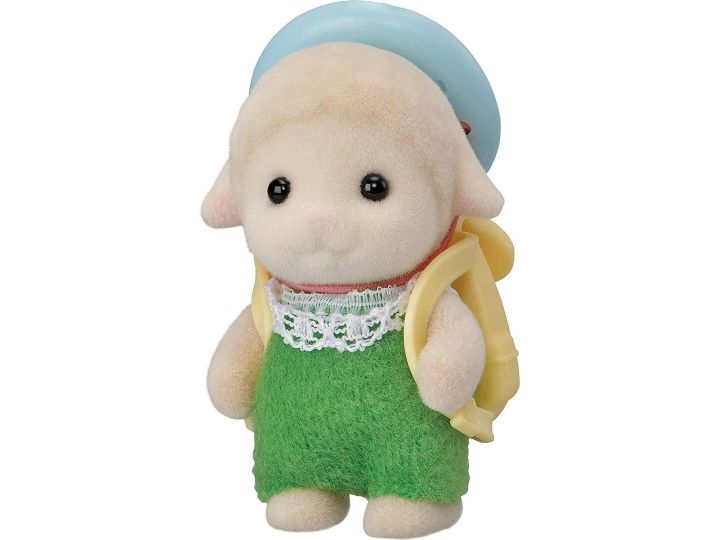 Emma Dale, sauebabyen i Sylvanian Families, prøver alltid å hjelpe resten av familien i frukthagen, selv om hun enda er veldig liten. Hun er kjempeglad når hun får trekke en gammel fruktkurv etter seg som de andre legger frukten i. Etter at hun en ettermiddag ble stukket av en veps, vil hun ikke lenger plukke opp nedfallsfrukten fra bakken. Sylvanian Families sauebabysett inneholder den ca. 5 cm store sauebabyen, en hatt og en ryggsekk. Egnet for barn f.o.m. tre år. • baby • far, mor, sønn, datter • hode, armer og bein er bevegelige • ca. 4 cm stor