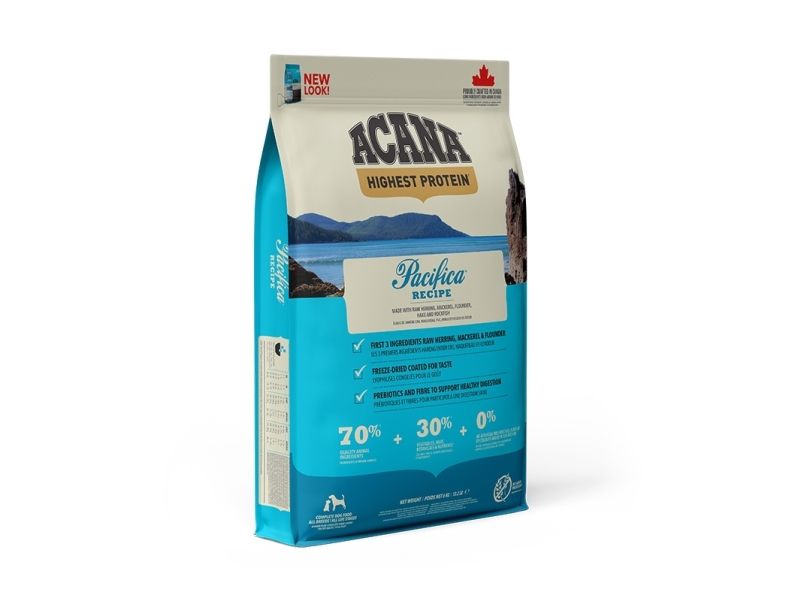 ACANA Pacifica er fyldt med Stillehavs-sild, sardin, flynder, kulmule og rødfisk, der alle leveres FRISKE og HELE hver dag. Pacifica sikrer din hund naturlig næring, uden en lang liste af tilsætninger.