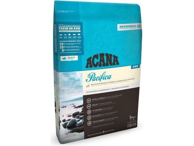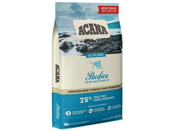 ACANA Pacifica afspejler det rige maritime dyreliv der findes i Canadas kolde klare Stillehav. Pacifica er fyldt med friske regionale Canadiske fisk, der fanges vildt og bæredygtigt ved North Vancouver Island.