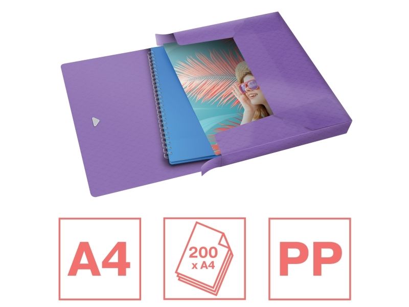 The Esselte Colour'Breeze box file is a practical and stylish solution for your filing and storage needs. Designed to support A4 (210 x 297 mm) documents, it boasts a capacity of 200 sheets, making it perfect for personal or professional use. The elastic band with button closure provides security for your documents, ensuring they remain in place while on the move or in storage. Constructed from durable and copy-safe polypropylene, this box file is designed to protect your documents and withstand daily use. Its embossed texture adds a touch of elegance, while the transparent nature allows for easy viewing of contents without the need to open the file. Additionally, the spine label offers a convenient way to categorize and identify files quickly. Whether you're organizing your office, home, or classroom, the Esselte Colour'Breeze box file is an excellent choice for keeping your documents organized, secure, and accessible.