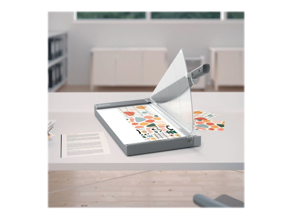 The Leitz Precision Office Pro A3 cutter is a must-have for any office looking to enhance its document handling capabilities. Engineered with a durable stainless steel blade, it can smoothly cut through cardboard, film, labels, laminated materials, mat board, and paper. Its high cutting capacity of up to 25 sheets makes it a time-saving solution for busy environments. This cutter is not just about power; it's also about precision. Equipped with an alignment grid, blade locking system, and light beam cutting line indication, it ensures accurate cuts every time. Safety is also a top priority, with a built-in safety guard to protect users during operation. Whether you're preparing presentations, projects, or any paper-based task, the Leitz Precision Office Pro A3 cutter is designed to deliver efficiency, accuracy, and safety.