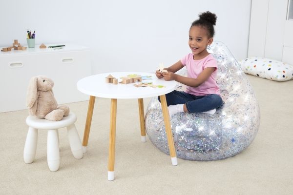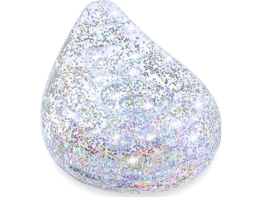 Sparkle even as you rest in the Bestway Glitter Dream Air Chair. This chair is engineered with clear materials and infused with iridescent silver glitter, its space-age design brightens up every room. Glitter Dream Air Chair can be used at parties, kids room décor or for outdoor patio relaxation. Designed for indoor and outdoor, use you can sparkle at the beach or glam up the campsite with this captivating piece of furniture. Pull out the air chair for picnics, beach time or just a trip to the park. The air chairs construction is made to stand up to the wear and tear of youth. Easy inflation makes it possible to set up the seat quickly, and easy deflation makes it simple to store. Air chairs are convenient, comfortable and posh. Plus they make redesigning your room a breeze. Let your childs personality shine indoors or outside with the Glitter Dream Air Chair.