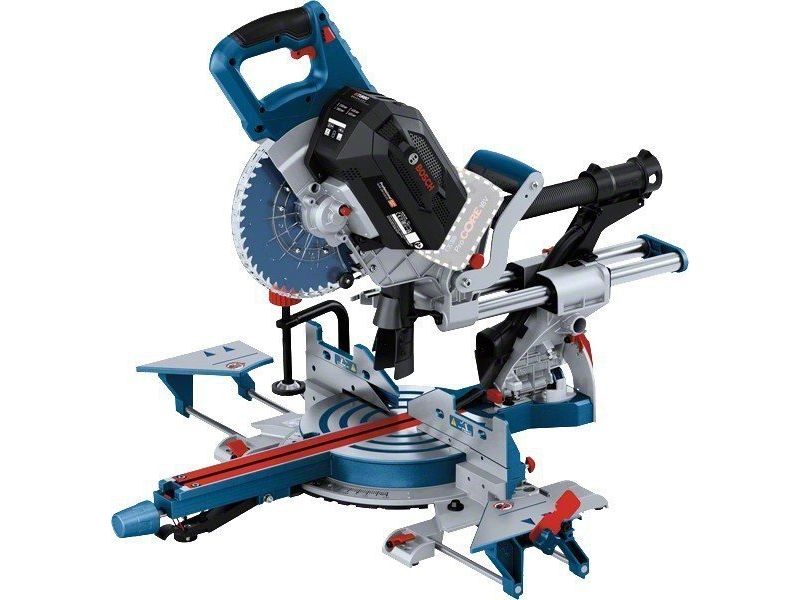 Equipment & Application The GCM 18V-216 DC is perfect for cross, mitre, and bevel cuts in timber beams and wooden composites as well as floor panels, aluminium, and plastic. It is compatible with the Click & Clean System, all Bosch GTA mitre saw stands, and all Professional 18 V batteries and chargers (Bosch Professional 18V System). For maximum power, use ProCORE18V ≥ 5.5 Ah.