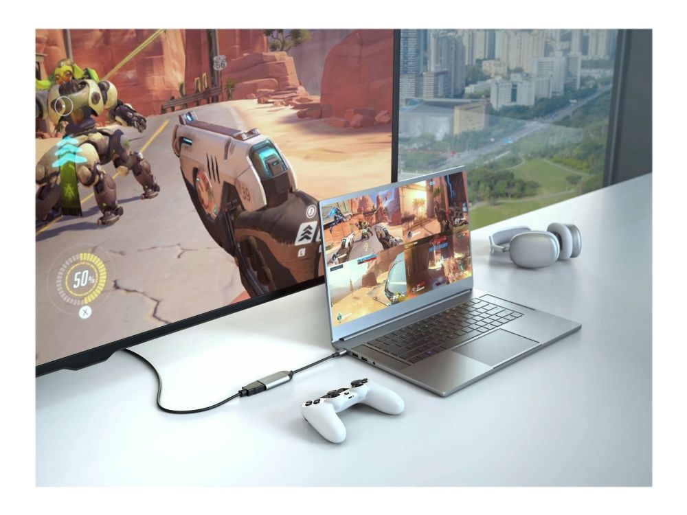 The Targus HyperDrive video adapter enhances your multimedia experience with support for 4K144Hz and 8K60Hz, delivering clear and fluid visuals, making it a great choice for gaming, watching movies, or professional graphic design. The adapter's slim, aluminum enclosure ensures durability for everyday use. Its support for DisplayPort Alternate Mode allows for seamless video output, making it a versatile tool in your technology arsenal. Whether you're presenting in a meeting or setting up a home theater, the HyperDrive's high-resolution support, durable design, and versatile connectivity make it an essential accessory for any tech enthusiast.
