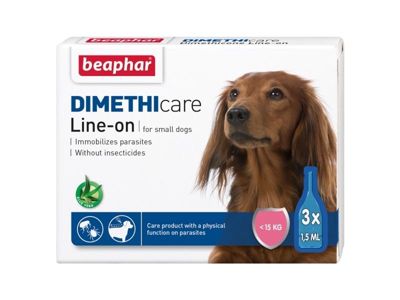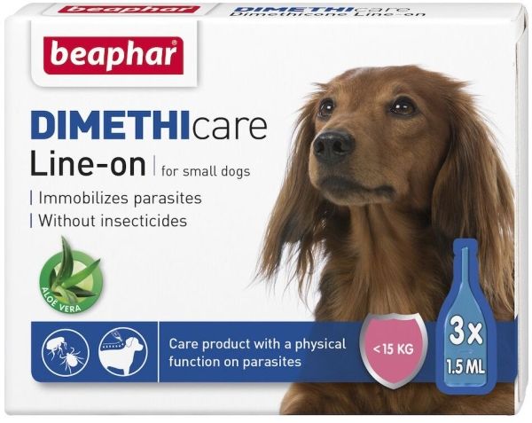 Beaphar Dimethicare Line-On för små hundar <15kg, kan användas för att stödja underhållet av huden och pälsen. Förutom den mjukgörande funktionen i produkten, så kan den även användas för att behandla djur mot parasiter.