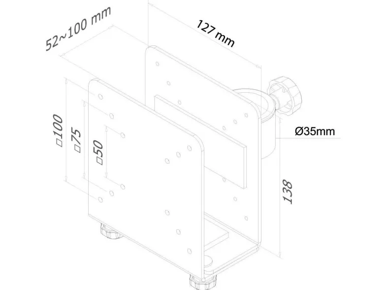 The Neomounts thin client mount, model THINCLIENT-10, allows you to mount a thin client computer to a monitor mount. A thin client mount creates a need and clean desk because it's stored behind the monitor and doesn't use any valuable desk space. Increase the lifetime of your computer due to reduction intake dust and dirt. Keep the workplace clean without computers on the desk. This Neomounts thin client mount allows vertical installation of thin client computer between the screen and monitor mount. This product includes VESA50, VESA75 and VESA100 hole pattern to simplify installation with flat screens and flat screen mounts. Hide your cables and keep the workplace nice and tidy. Easy to adjust in width and depth to fit most thin-client PCs. All installation material is included with the product.