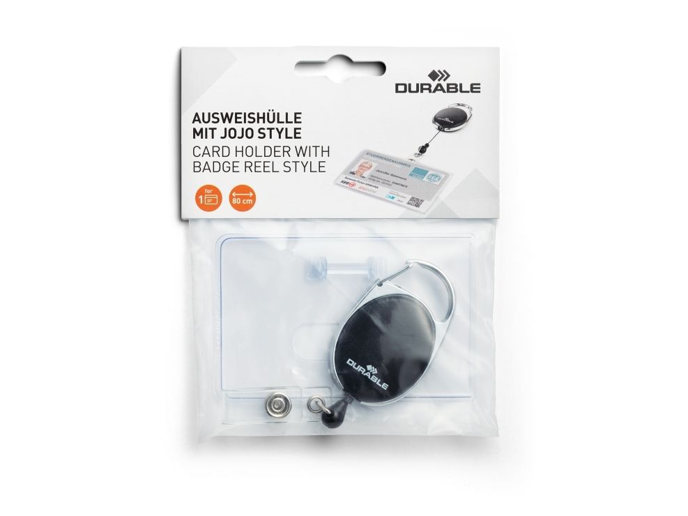 | • ID-kortholder i lukket design til 1 adgangs-/sikkerhedskort i tværformat • Af fleksibelt materiale • Glasklart materiale giver optimal læselighed og nem scanning af stregkoder • Forsynet med fingerhak til let udtagning af kort • Yoyo STYLE med karabinhage og trykknapstrop • Båndlængde yoyo: 80 cm • Indvendigt mål: 54 x 87 mm (h x b) |