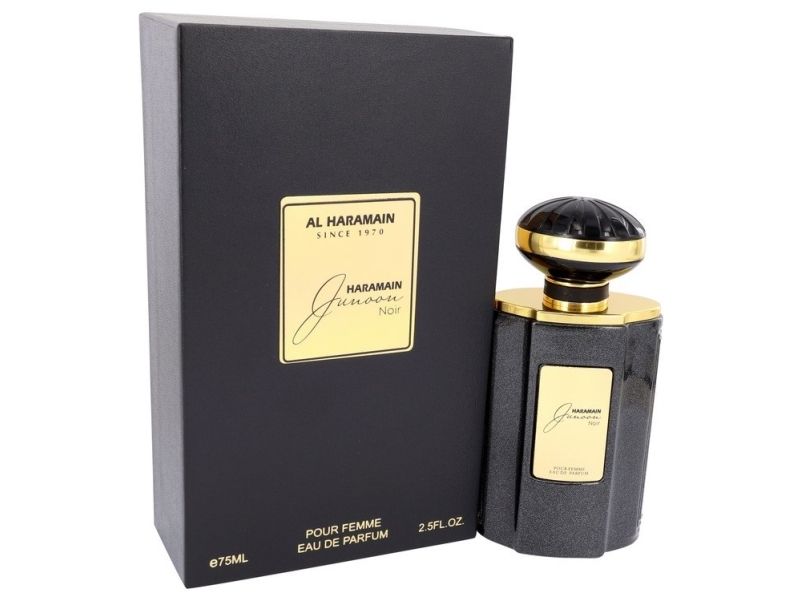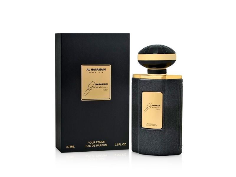 First launched in 2016 Al Haramain Junoon Noir layers mesmerizing fresh and exotic florals over seductive accords of wood and musk Intoxicating jasmine banana toned ylang ylang and powdery clean red rose open the fragrance Heady jasmine and rose notes persist and deepen at the heart joined by earthy elegant orris root iris and the sweet tobacco nuances of tonka bean Products