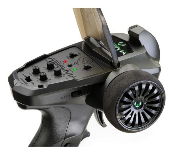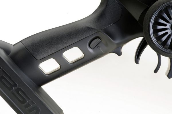 Senderen har 4 kanaler, som er opdelt som følger) - CH1: Rat / CH2: Gashåndtag (trigger) / CH3: 3-positioner vippekontakt / CH4: TrykknapReverse-funktion (REV): Med denne funktion kan servoens/motorens omdrejningsretning indstillesTRIM: Indstilling af lige kurs og gas-neutral positionDual Rate-funktion (D/R): Ved aktivering af drejeknappen kan styreudslag eller motorens drejeeffekt øges/reduceresFailsafe-funktion: Denne funktion angiver, hvad modtageren skal dele, hvis signalet til senderen er gået tabt (for eksempel fuld opbremsning)Begynder tilstand: Denne funktion er beregnet til nye nybegyndere. I denne tilstand reduceres motorydelsen automatisk til 50%