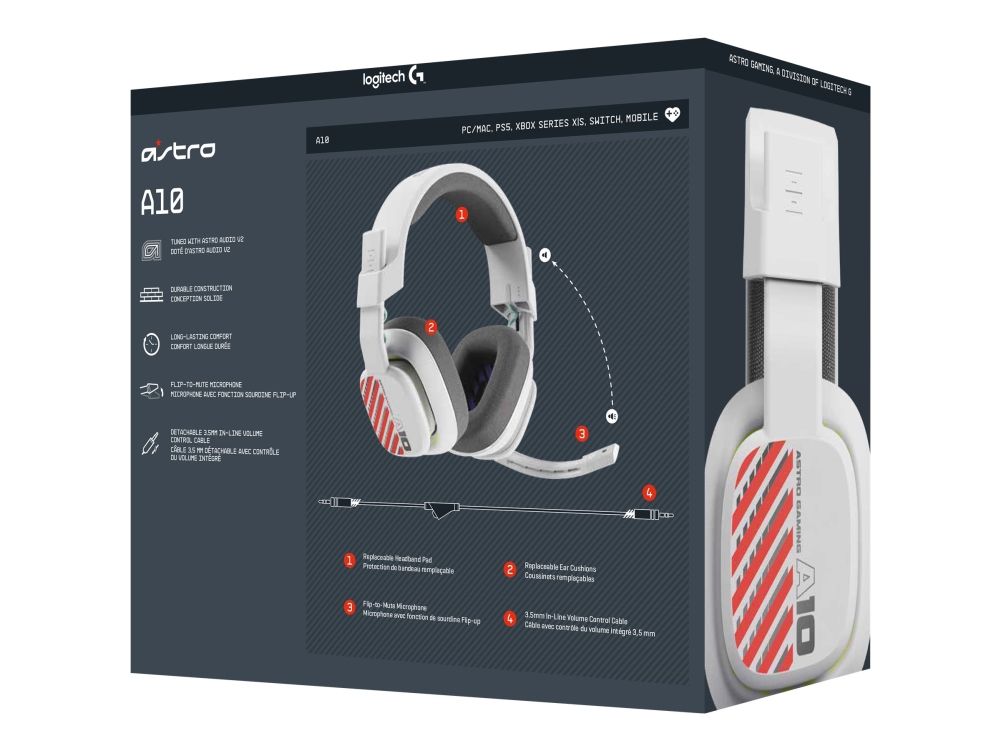 ASTRO Gaming A10 Gen 2 - Hodesett - full størrelse - kablet - 3,5 mm jakk - hvit