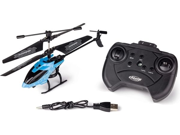 Vil du erobre modelflyvehimlen? Med CARSON starter Tyrann 230 cyan er vejen ind i en verden af fjernstyrede helikoptere garanteret. Indoor-helikopteren har en styrrelse og er udstyret med en 2-kanals infrarød fjernstyring. Den når en hastighed på 10 km/h. Tylanen oplades nemt via USB-kabel, hvilket giver was hele 11 minutters flyvetid. Meget sjov med DIN CARSON-starter tyrann! Køb - opladning - flyvning!