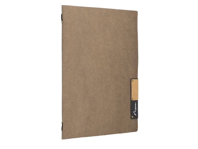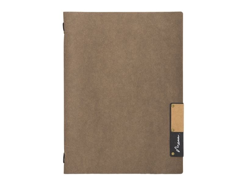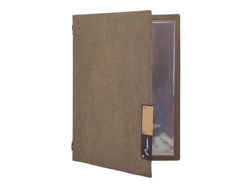 • Nul spild med det miljøvenlige Securit® A4 Nature Menuomslag. Perfekt til miljøbevidste, moderne barer og restauranter. Dette menuomslag er lavet af 100% naturlige fibre. En dobbeltsidet lomme til 4 x A4-sider inkluderet. Takket være den praktiske elastiske holder kan det let udvides op til 40 x A4-sider ved hjælp af Securit® Menu lommer. Fås i forskellige farver og størrelser.