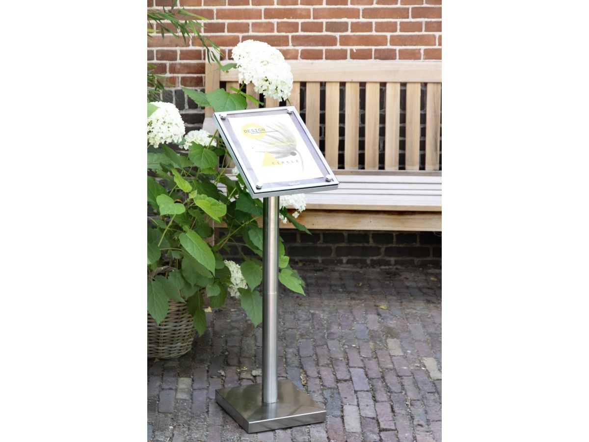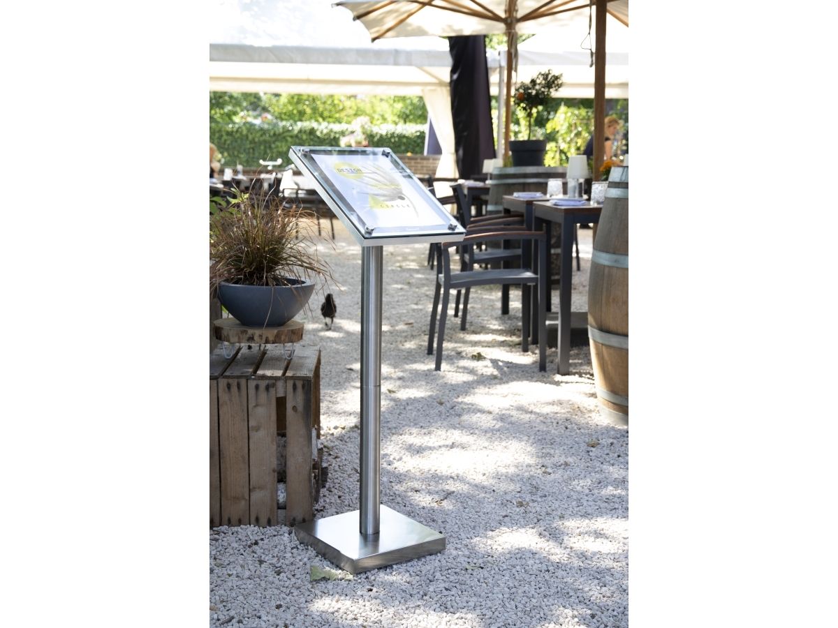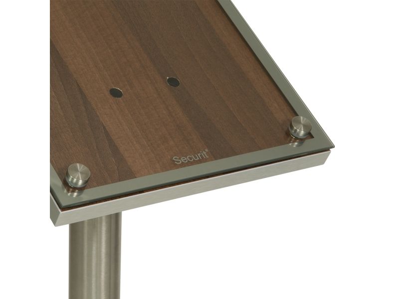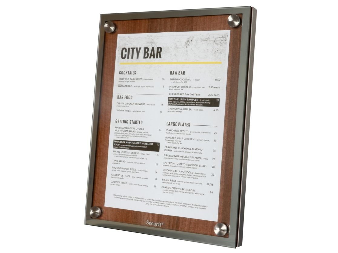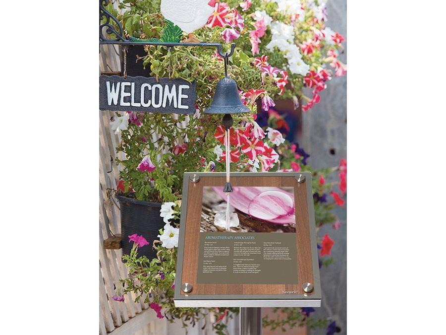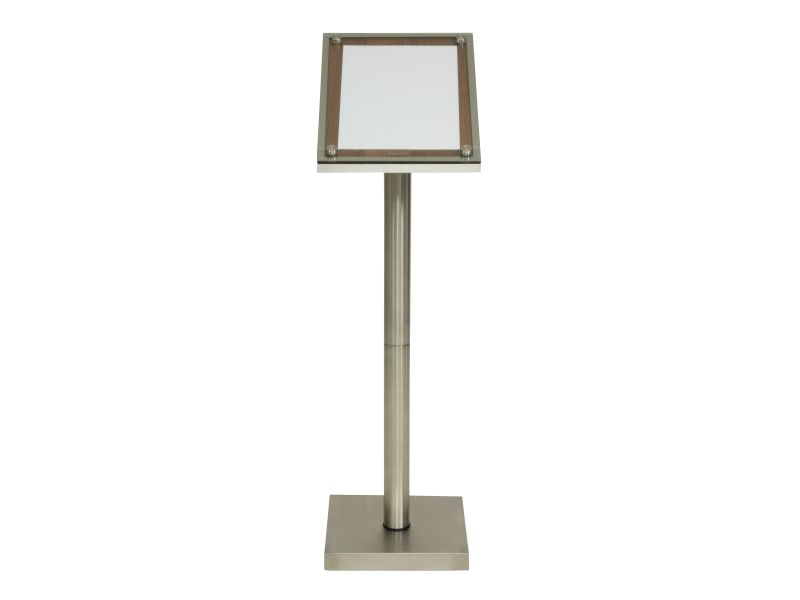 Glass Star Information Display – Hard wooden display with a stainless steel style edge and a front glass plate.
