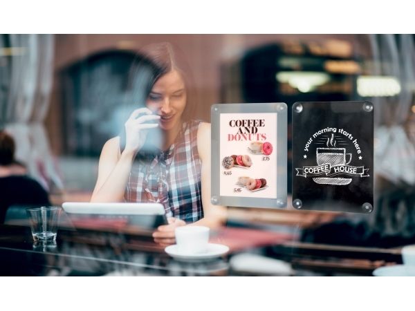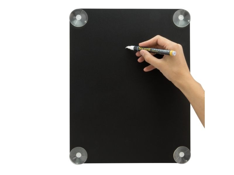 Vær kreativ og informer dine kunder med Securit® Window Tavle. Dekorer det med Securit® kridtmarkere, sæt det på et vindue og tiltræk flere kunder med dette iøjnefaldende vinduesskilt. Denne dobbeltsidede tavle med integrerede sugekopper er let at fastgøre på dit vindue eller enhver anden glat overflade. Vi anbefaler at bruge vores Securit® kridtmarkere, der fås i forskellige farver og størrelser.