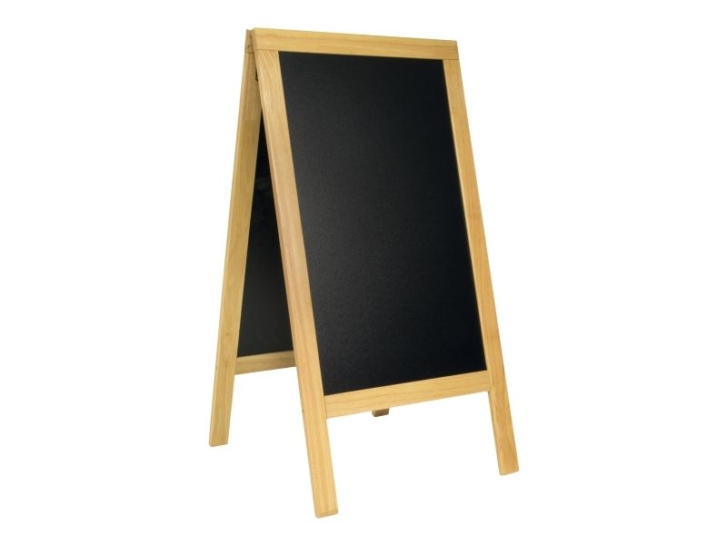 Securit® Deluxe A-skilt er et populært valg for caféer, barer, restauranter og butikker. Dette store A-skilt til alle vejrforhold har en ridsefast UV-sikker skriveflade og en solid tredobbelt lakeret gummitræs ramme med rustfri stålbeslag. Ideel til såvel udendørs som indendørs brug og designet til at modstå vind op til 40 km / t.