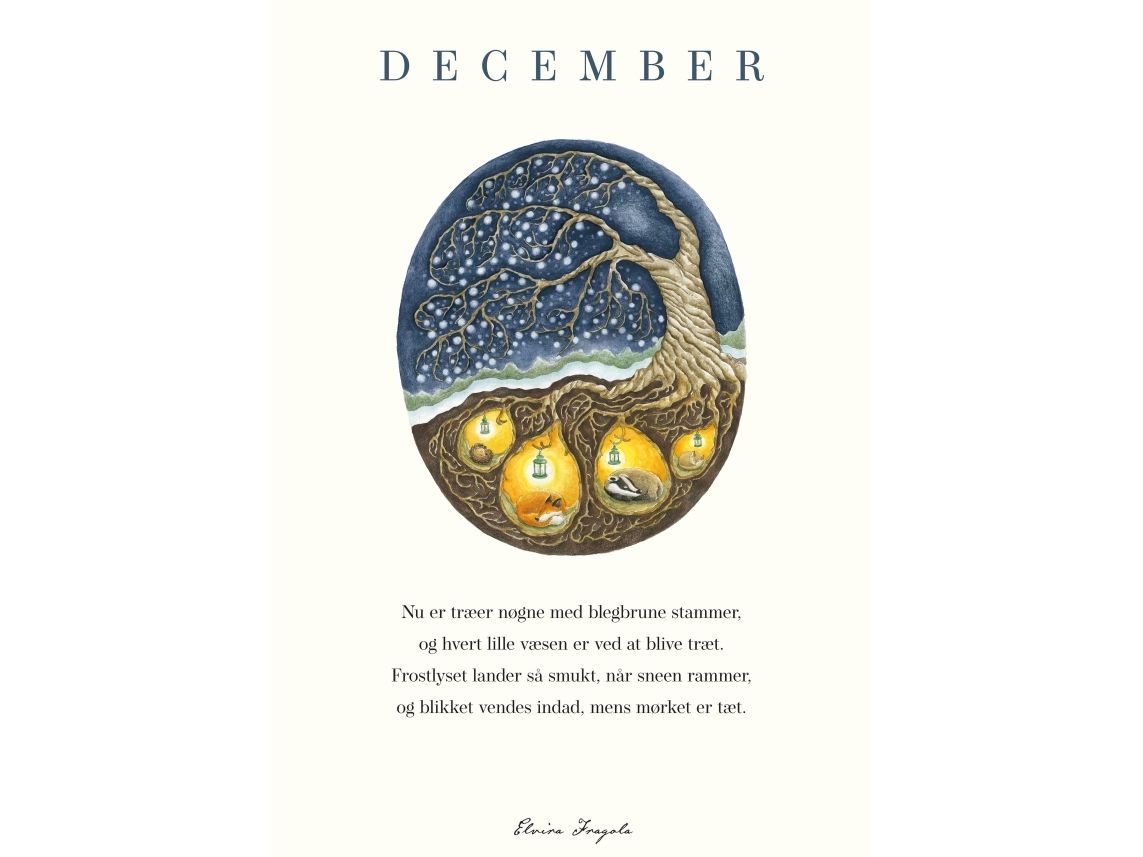 Månedsplakat for December.Med illustration og et lille digt, der passer til måneden.Illustration og digt er fra Elvira Fragolas bog "Året set gennem små øjne."