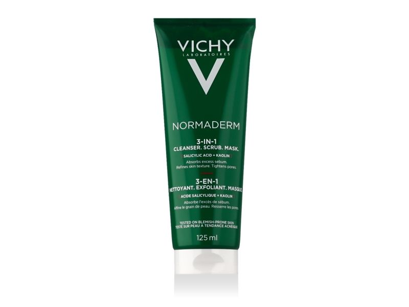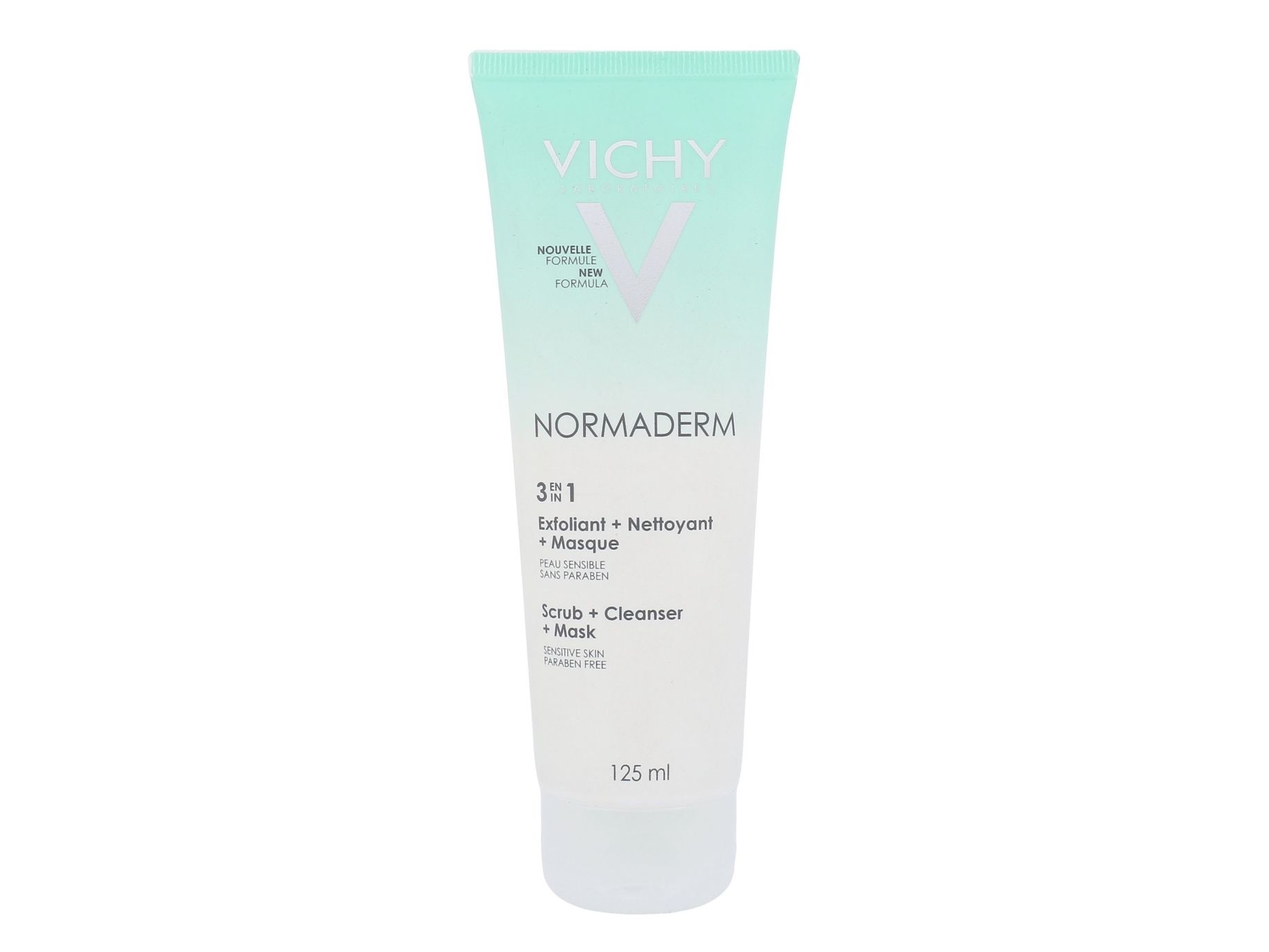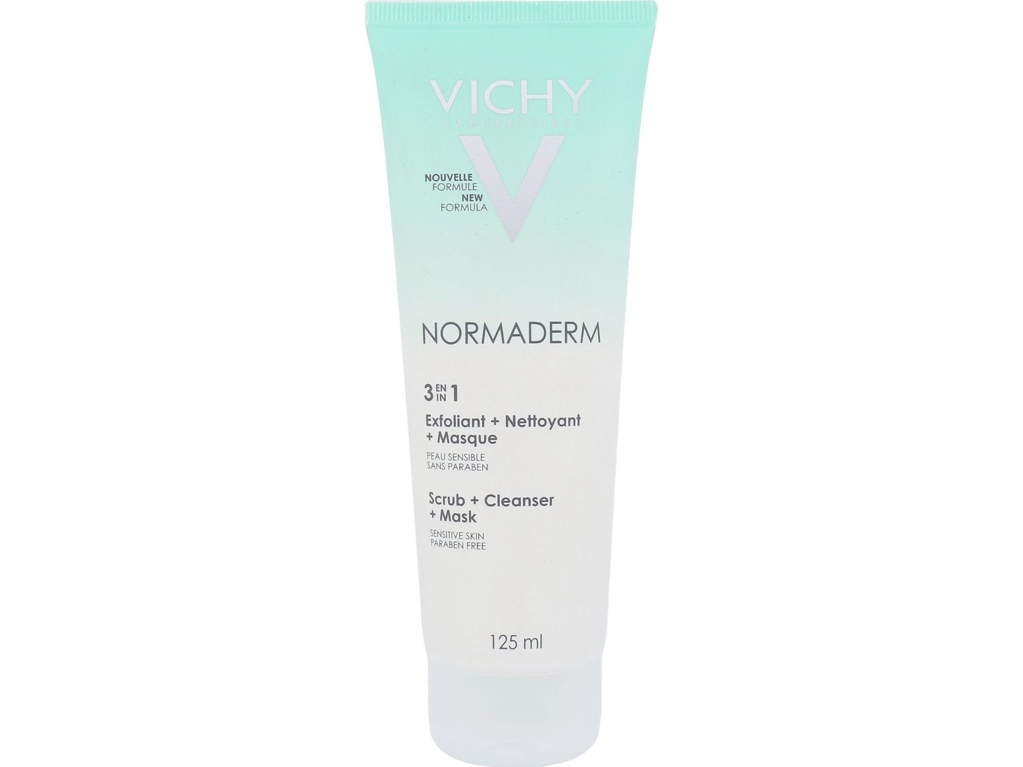 Acting as a cleanser, scrub and mask, Vichy Normaderm's 3-in-1 Cleansing + Scrub + Mask is a one-stop solution for oily and imperfection-prone skin. When skin produces too much oil and becomes overburdened, clogged and imperfection-prone, it needs gentle care to make it feel fresh and comfortable again. Normaderm's 3-in-1 Cleansing + Scrub + Mask combined cleanse, scrub and mask action is rich in soothing properties and clarified Clay, making it perfect for even sensitive skin.Use Normaderm's 3-in-1 Cleansing + Scrub + Mask as a cleanser by lathering onto a damp face and rinsing off with plenty of water. Alternatively, use the cream as a daily scrub to unclog pores, and make the texture of the skin more uniform, or use as a mask once a week to intensely cleanse and remove dead skin cells. Apply in a thick layer and leave on for 5 minutes before rinsing away thoroughly. Avoid the eye contour.