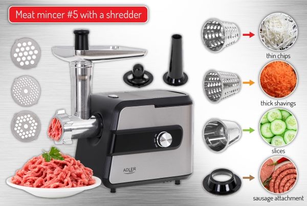 The meat mincer with a shredder ADLER AD 4813 is one of those devices without which it is difficult to imagine easy and pleasant cooking. Mainly because it is a piece of equipment, useful for processing, also other products: nuts, vegetables, and fruits. If you are looking for a new meat mincer, you should consider buying this particular model.