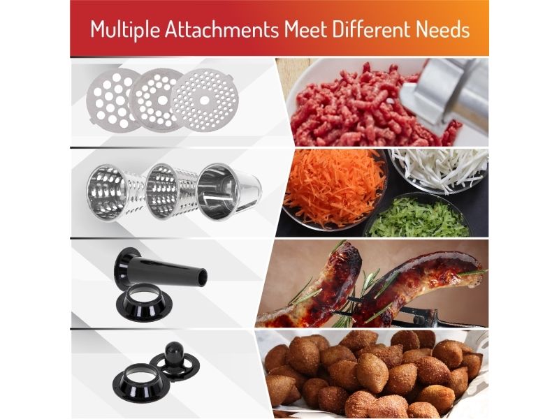 The meat mincer with a shredder ADLER AD 4813 is one of those devices without which it is difficult to imagine easy and pleasant cooking. The meat grinder is equipped with 3 interchangeable stainless steel screens with a hole diameter of 3mm, 5mm, 7mm and a vegetable cutter with three blades. The whole thing is made of durable materials, easy to disassemble and clean. The device has a built-in storage for caps and strainers to prevent losing them. The machine comes with three stainless steel sieves. The machine also comes with a sausage attachment and a Kebbe attachment, which allows you to feel like a professional chef and take care of healthy food for the family.
