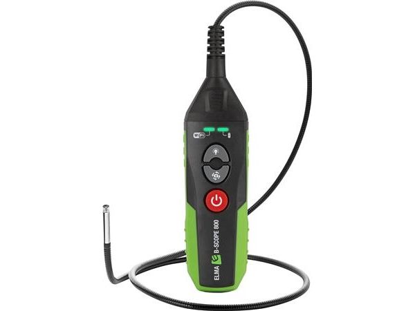 Elma B-Scope 800 er et robust dobbeltkamera WiFi endoskob, som anvender Smartphone som skærm. Om det er kablet der er blevet væk i skillevæggen, inspektionen af svejsningen i røret eller bare at skulle se uden at adskille, er Elma B-scope din nye makker. Krystalklar 1280P HD opløsning og kraftigt lys gør det usynlige synligt, og med 2 kamera, ligeud og til siden, er det slut med spejle og vrid, for at dreje kamera. Med WiFi til iOS eller Android Smartphones optages billed- eller videodokumentation med et enkelt tryk. Instrumentet leveres klar til brug i taske med indbygget genopladeligt batteri, ladeledning, fiskekrog og en ca. 1 meter lang flexibel 6mm probe.