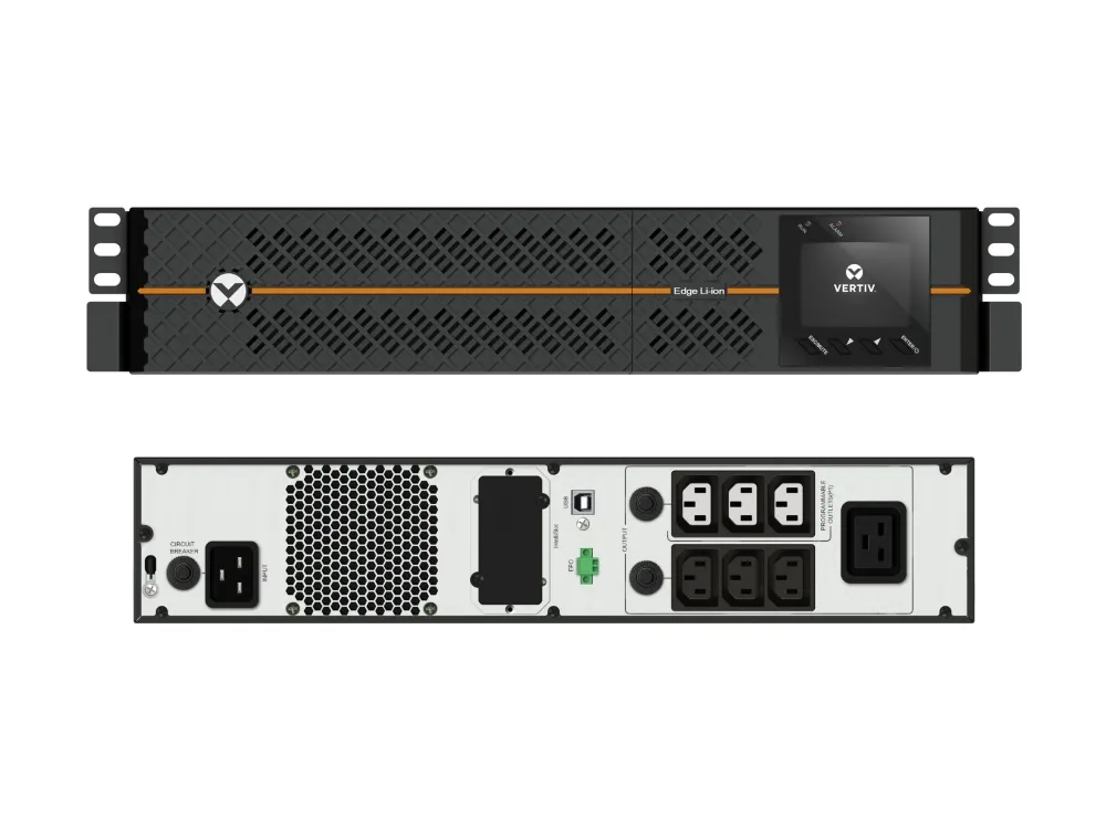 The Vertiv Edge Lithium Ion uninterruptible power supply (UPS) is designed to safeguard critical equipment in server rooms, network closets and other edge and distributed IT applications. This 2200VA UPS offers lower total cost of ownership, which can be up to 50% savings over lifetime. Lithium-ion batteries have greater power density, last about 2-3 times as long, recharge quicker and endure up to x10 more discharge cycles than traditional valve-regulated-lead-acid (VLRA) batteries. It includes automatic voltage regulation (AVR) technology to further extend battery life and provides plenty of runtime on battery during an outage for an orderly shutdown. This set-it-and-forget-it single phase UPS system together with the optional webcard for remote management, becomes ideal for remote or unmanned locations. This rack/tower UPS comes with a rotating LCD display to allow both rack and tower configurations.