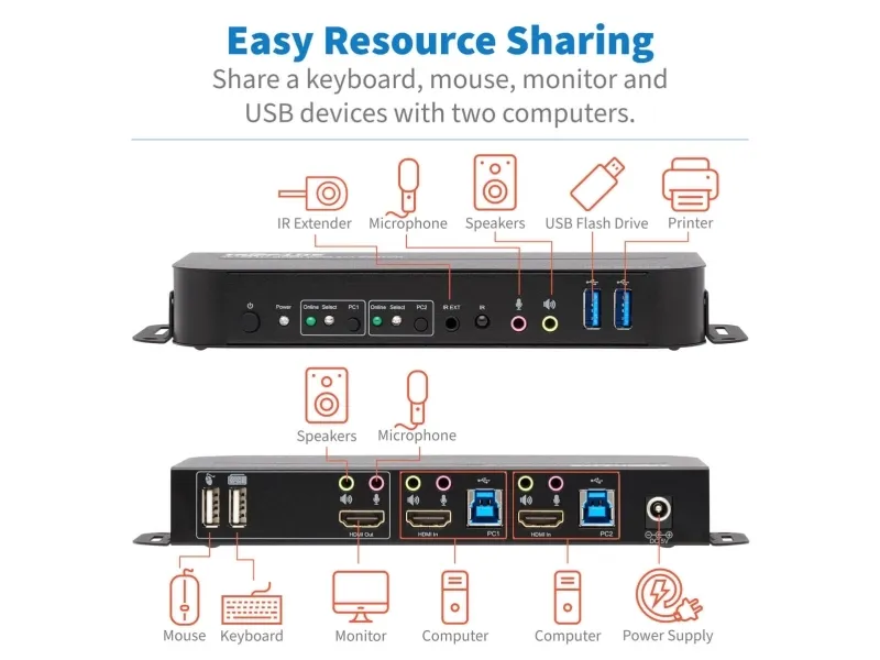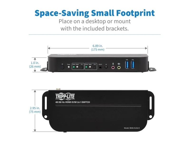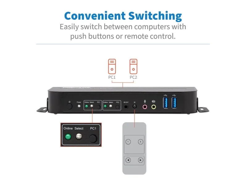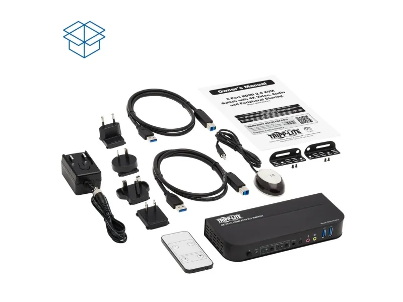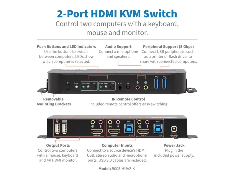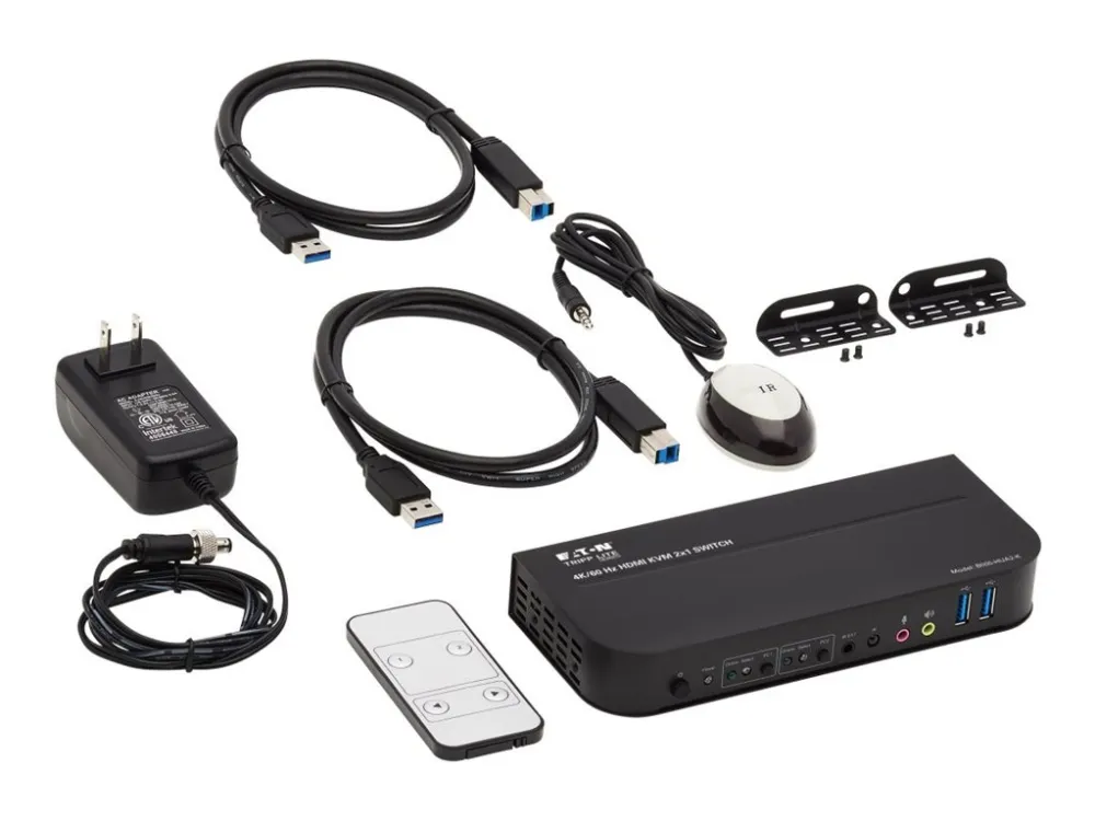 Eaton Tripp Lite series HDMI KVM, 2-Port 4K 60Hz 4:4:4, HDR, HDCP 2.2 Support, IR Remote and USB Cables - KVM / lyd / USB-svitsj - 2 porter