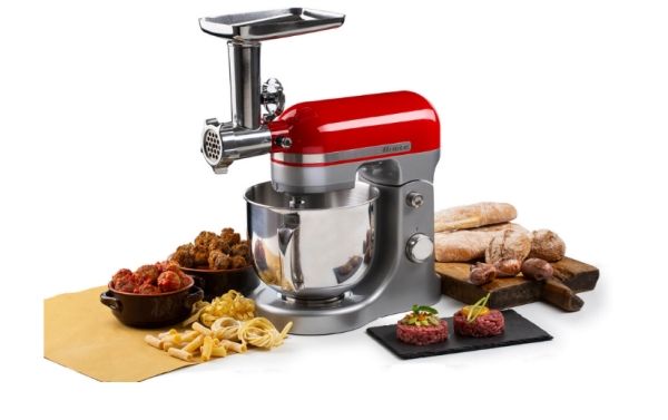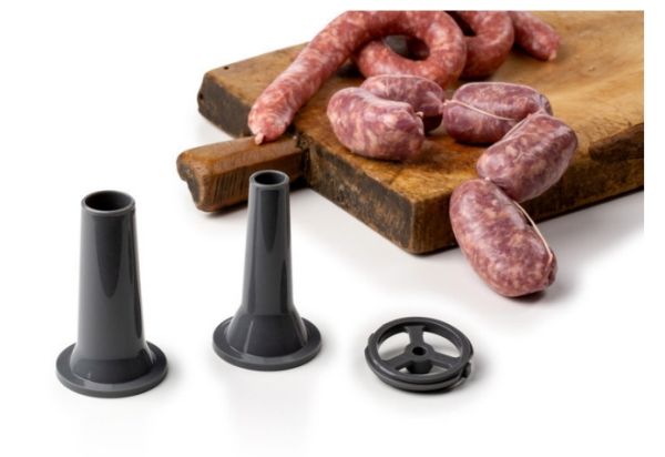 Accessory kit for Modern Kneader mod.1589: mincer, stuffer and pasta extruder. Prepare tartare, burgers, small and large sausages, meatballs and fresh pasta every day directly to your home