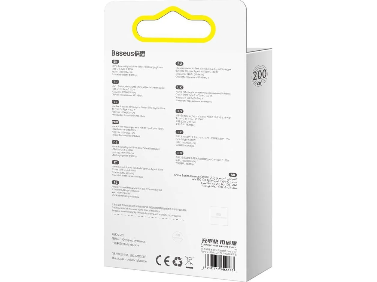 Baseus Baseus Crystal Shine Series USB cable cable USB cable for fast charging and data transfer USB Type C - USB Type C 100W 2m blue (CAJY000703)