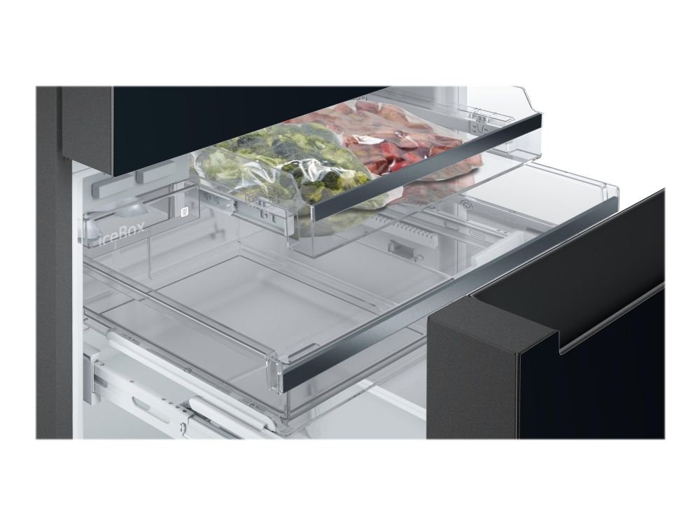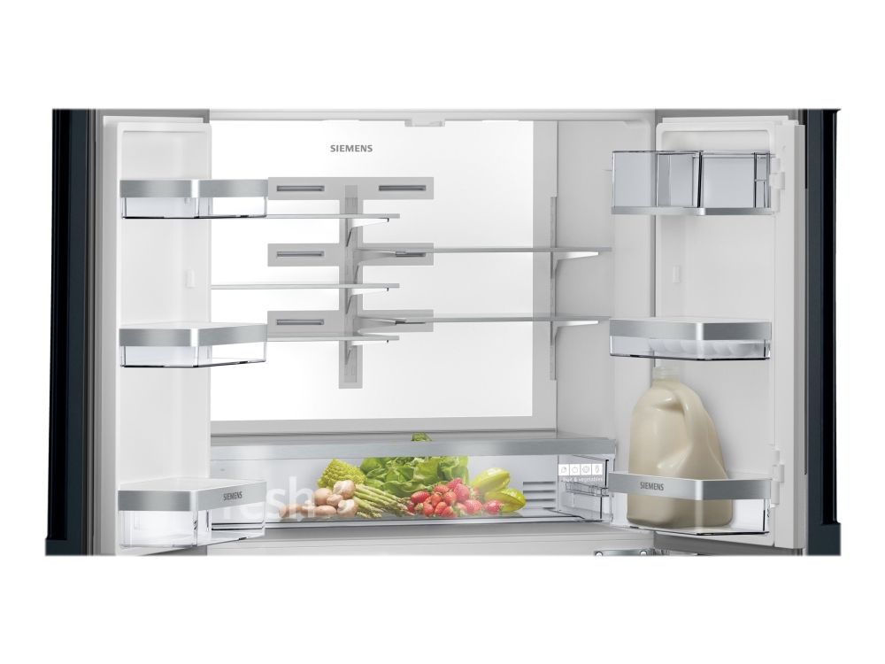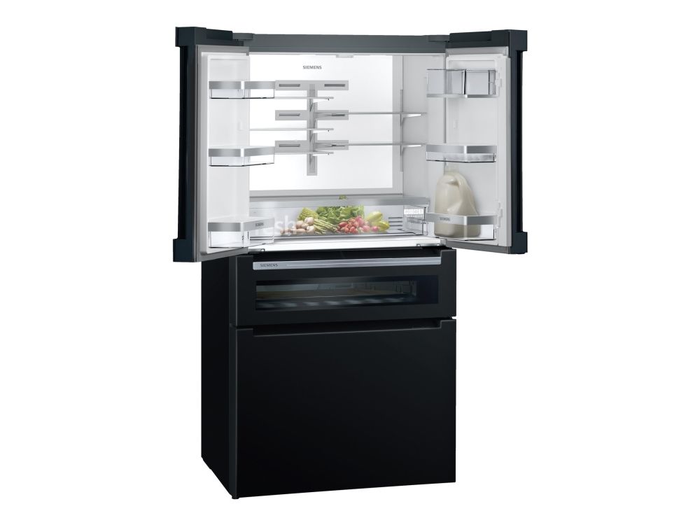 Siemens iQ700 KF96RSBEA - Kjøleskap/fryser - fransk dør underfryser - Wi-Fi - bredde: 90.6 cm - dybde: 73.6 cm - høyde: 183 cm - 572 liter - Klasse E - svart