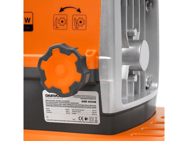 Rotary roller with 7 teeth The rotating roller equipped with 7 sharp teeth will make light work of branches, twigs and foliage. Silent Cut System is a ideal solution for easy and low noise working.Daewoo DSR 3000E. Weight: 20.5 kg
