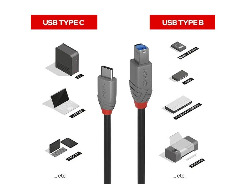 The Anthra Line USB 3.2 Type C to B cables from Lindy's Cable Lines concept are the professional choice for high performance connections in commercial AV and IT installations._x000D_
