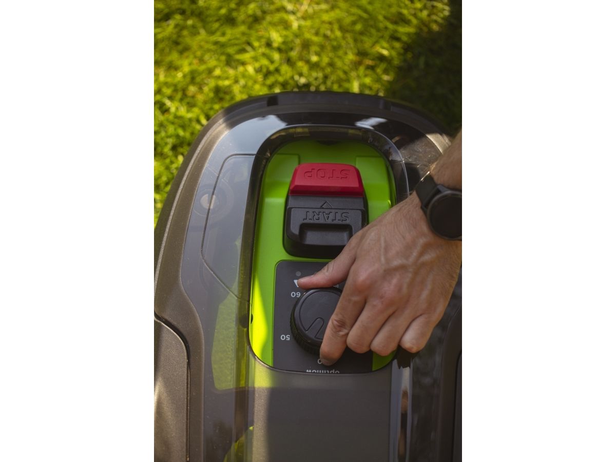 Føler du, at Optimow skal arbejde mere eller mindre? Juster og kontroller let dens arbejdstider via Bluetooth op til 32 meter fra maskinen.