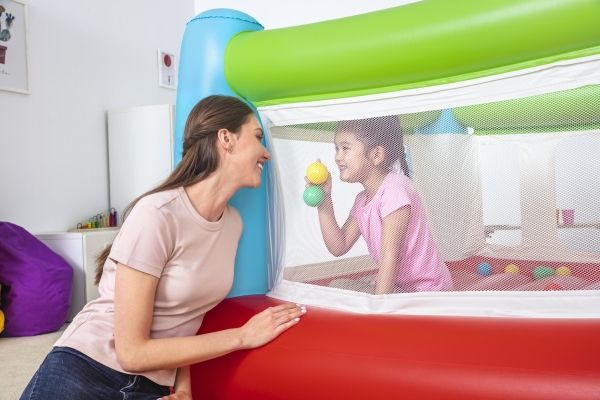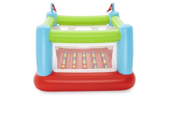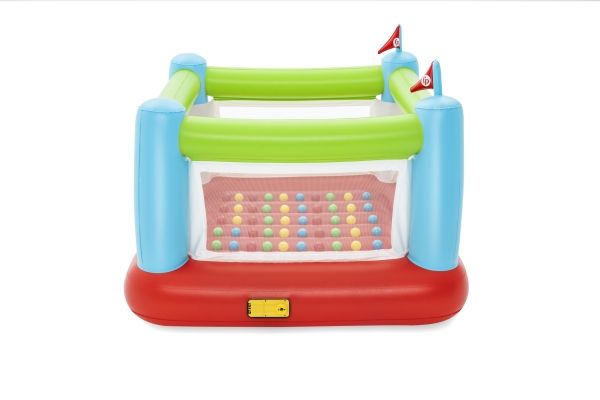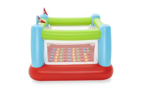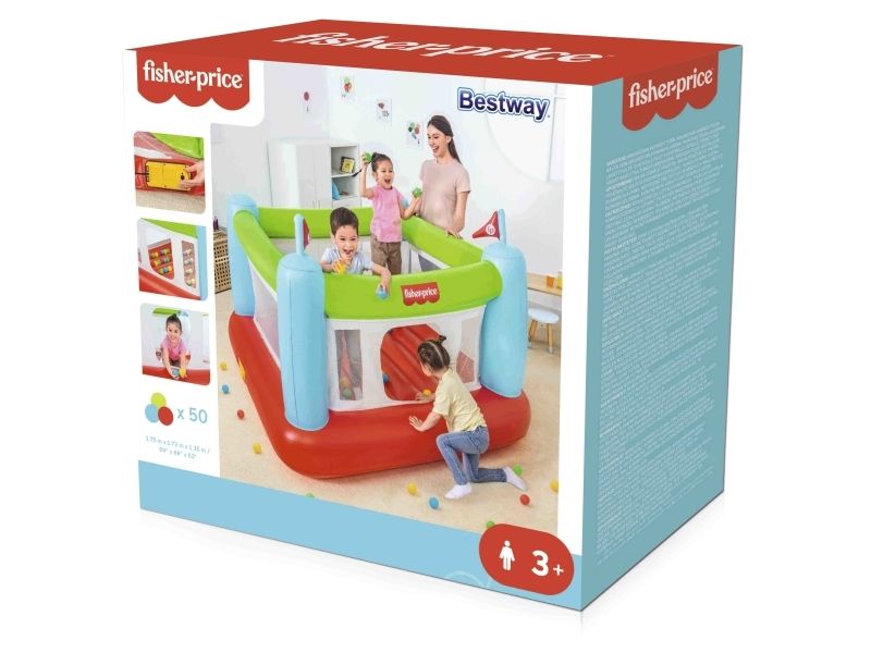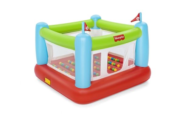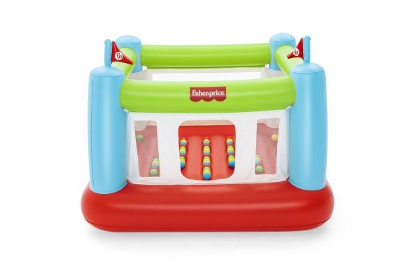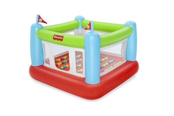 The Fisher-Price Bouncesational Bouncer is sure to be a hit with the kids - and parents too! This inflatable bouncer features a built-in pump to save both time and energy and get the kids bouncing in no time! Simply plug the bouncer in and watch it inflate in four minutes. Once inflated, kids will have a blast with the 50 included play balls that make each bounce that much more fun, all while developing hand-eye coordination, dexterity and gross motor skills. The Bouncesational Bouncer encourages kids to use their imaginations during playtime, all while developing necessary skills. The mesh walls give parents visibility at all times, while a single door allows kids to enter and exit the bounce house quickly. The built-in pump also allows for auto-deflation, so you can quickly pack up and store. The Fisher-Price Bouncesational Bouncer makes playtime quick, easy and most of all - fun!