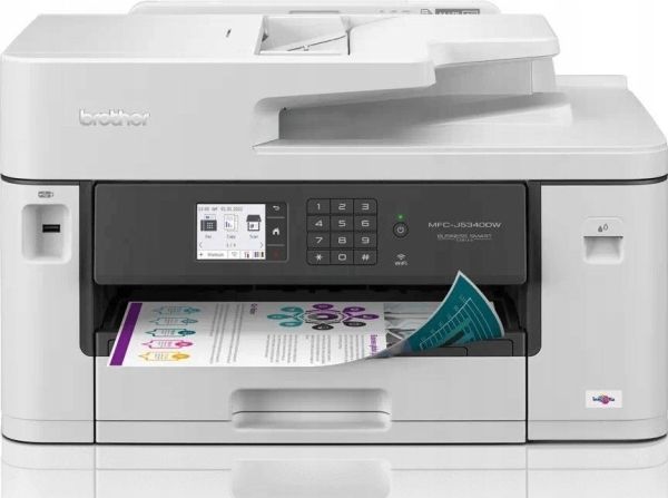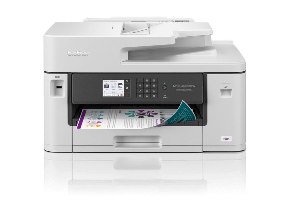 Brother MFC-J5340DW er en alt-i-ett-fargeskriver med blekkskriver i farger som gir økonomiske og pålitelige utskrifter av profesjonell kvalitet på små kontorer eller hjemmearbeidsplasser. Denne alt-i-ett-utskriftsløsningen er et smart valg for brukere som ofte skriver ut, kopierer, skanner og fakser, og hever standarden for enkelhet og produktivitet.