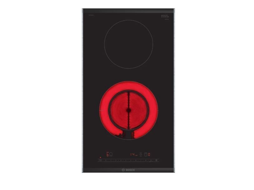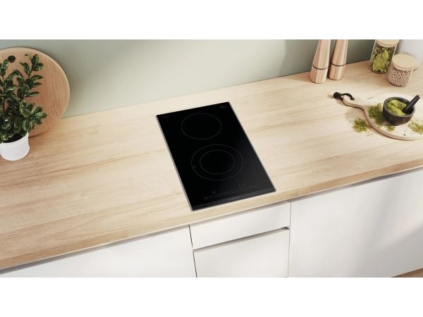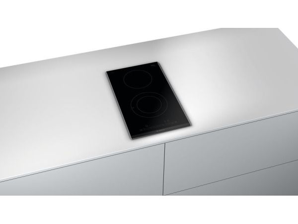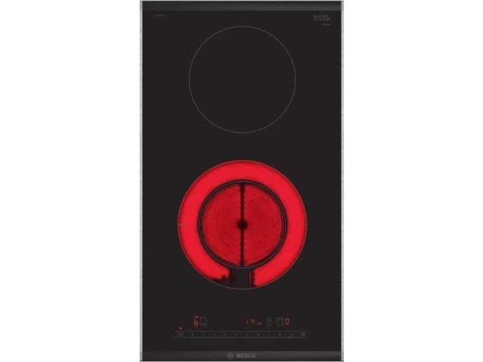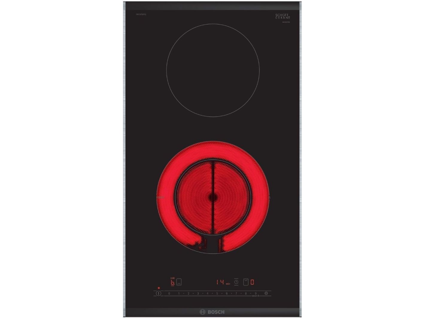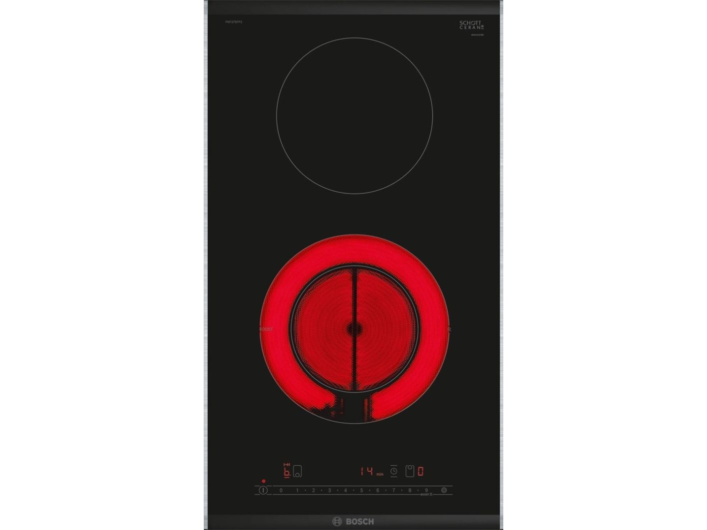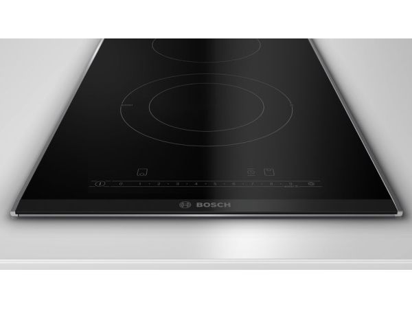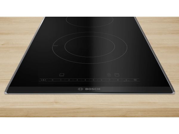 Bosch Serie | 6 PKF375FP2E keramisk komfyrtopp - 30 cm - børstet aluminium / svart - keramisk - med avfaset front- og baksideinnredning, - with ComfortProfil, - with brushed aluminum side trims
