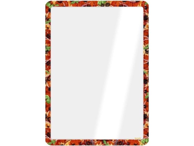 Indram og vis dine oplysninger på en professionel måde. Den magnetiske lukning, gør det muligt at ændre dine informationer hurtigt og effektivt i en dekorativ ramme. Ideel til kampagnetilbud, åbningstider, annoncering, restriktioner, instruktioner osv. Designet til at blive brugt i detailhandlen, caféer, hoteller, restauranter, produktionsfaciliteter og kantiner, men også i hjemmet. Et unikt of eksklusivt design med print og afrundede kanter. Kan klæbes på alle glatte flade overflader. Kan tages af igen uden at efterlade mærker. Print og vindue på begge sider, gør den til et dobbeltsidet vinduesdisplay. Magnetisk lukkesystem. Højkvalitets antirefleks 250 µ PVC foran. Genplacerbar 110 µ selvklæbende PVC på bagsiden. Kan bruges i både liggende og stående format. Komfortabel læsning takket være den anti-reflekterende overflade. Den matte overflade virker ren, selv hvis der er blevet peget på den med fedtfingre
