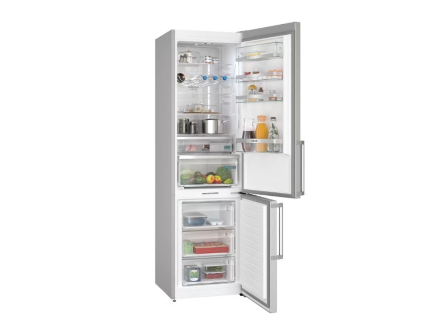 1 x flaskestativ - krom 3 x hylle - høydejusterbart sikkerhetsglass 2 x hylle - sikkerhetsglass 1 x grønnsaksskuff - luftfuktighetskontrollert hyperFresh 1 x dørlager for flasker