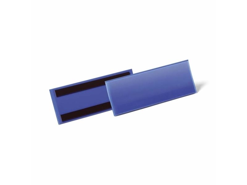 Document pouch with two magnetic strips on the reverse for use in warehouse and store environments. Made of hard-wearing polypropylene, small labels can be inserted for application to metal shelves and containers and suitable for use with scanners. Tear-resistant. Inserts can be exchanged quickly. Download of templates for insert labels available from www.duraprint.eu. Format interior: ½ A5 (210 x 74 mm) Format external: 223 x 81,5 x 2,3 mm