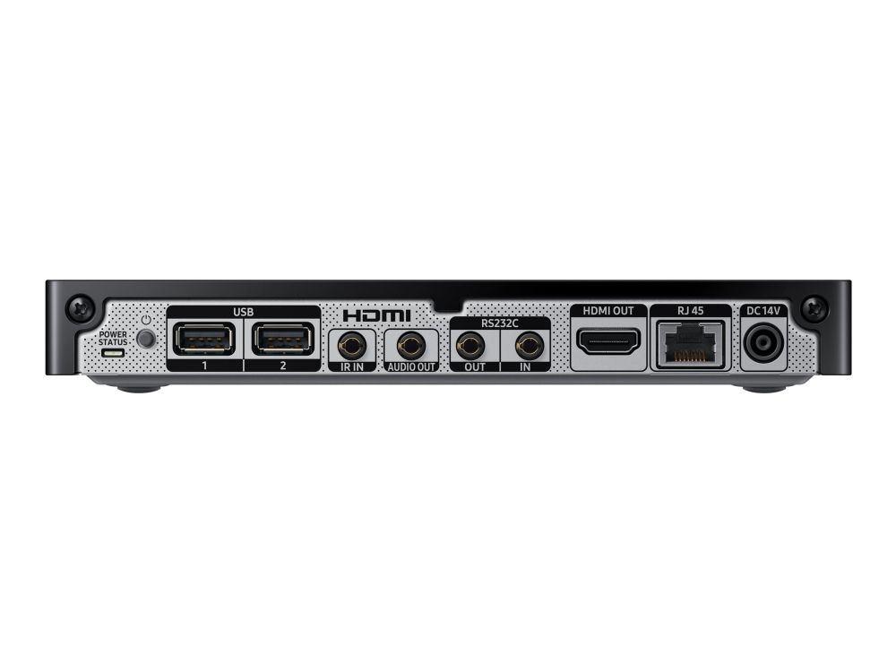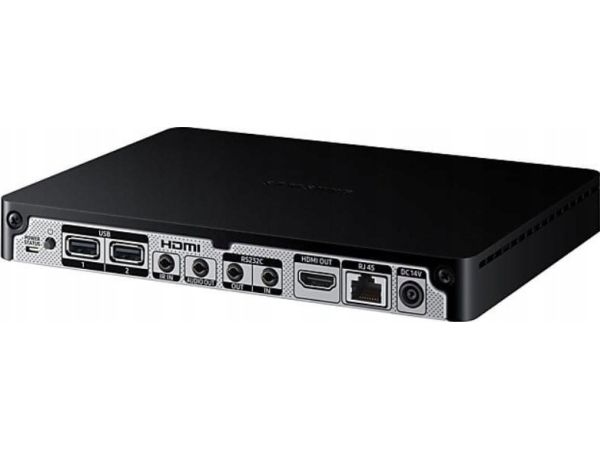 Samsung Signage Player Box UHD er utviklet for å produsere innhold av høy kvalitet og samtidig minimere driftsbegrensningene. Signage Player Box er basert på det kraftige Tizen-operativsystemet og kan vise UHD-bilder på videoveggkonfigurasjoner på 5 x 5. Den allsidige Signage Player Box er en slags sentralisert gateway som sørger for flytende utveksling mellom serveren og skjermene, uten behov for store og dyre eksterne enheter eller mediespillere.