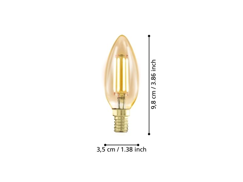 Eglo - LED-filamentlyspære - form: C35 - E14 - 4 W (ekvivalent 28 W) - varmt hvitt lys - 1700 K - ravgul