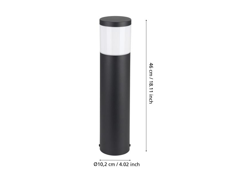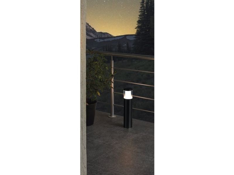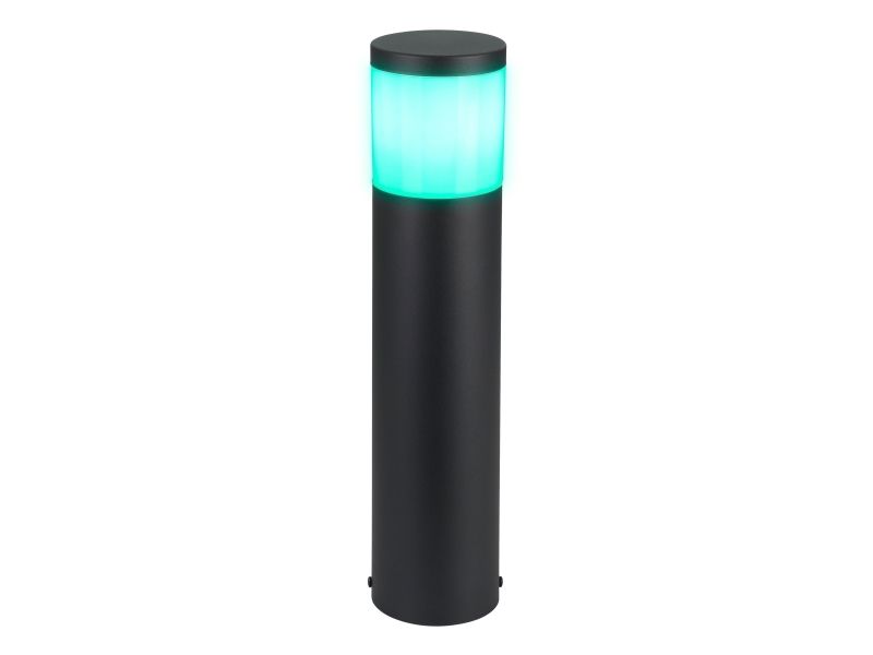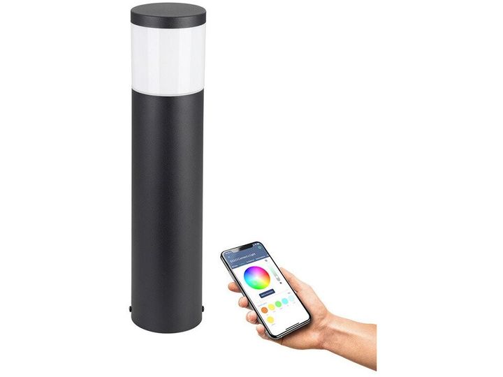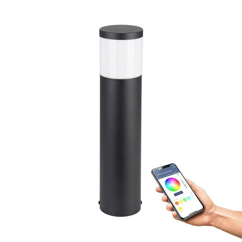 EGLO CONNECT-Z BASALGO-Z udendørs stander i sort. Højde 45 cm, diameter 10,5 cm. E27, 9 watt, 806 lumen, 2700-6500 kelvin, RGB + Tunable white. Lampen kan dæmpes og styres med fjernbetjening (medfølger ikke), via AwoX Home Control app (gratis), eller ved stemmestyring. Zigbee er kompatibel med Amazon Alexa og Google Assistent. IP44. Dette produkt indeholder en lyskilde med energieffektivitetsklasse: G.