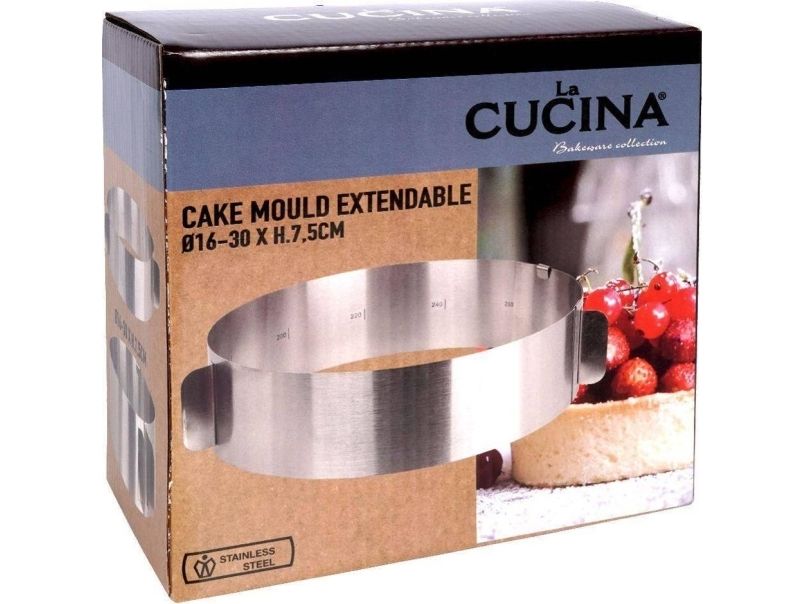 La Cucina kakebakeform Justerbar rund uttrekkbar kakebånd Stålkant 16-30 cm