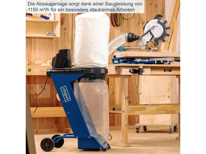 Scheppach DC500. Cleaning type: Dry, Product colour: White. Capacity: 75 L, Airflow (high speed): 1150 m³/h, Hose length: 2 m. Input power: 550 W. Width: 460 mm, Depth: 750 mm, Height: 420 mm